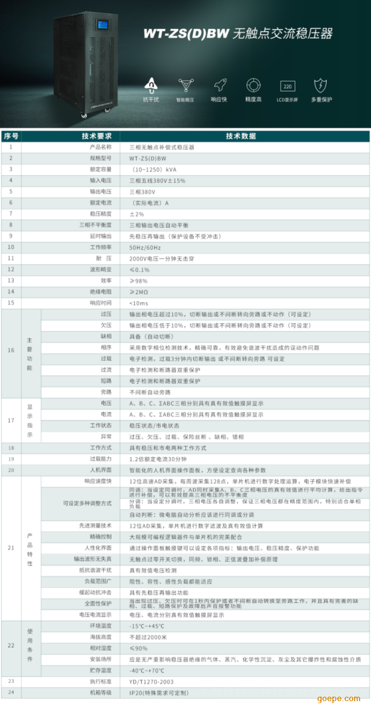 - 稳利达ZSBW三相380V智能无触点补偿式交流稳压器ZSBW-20