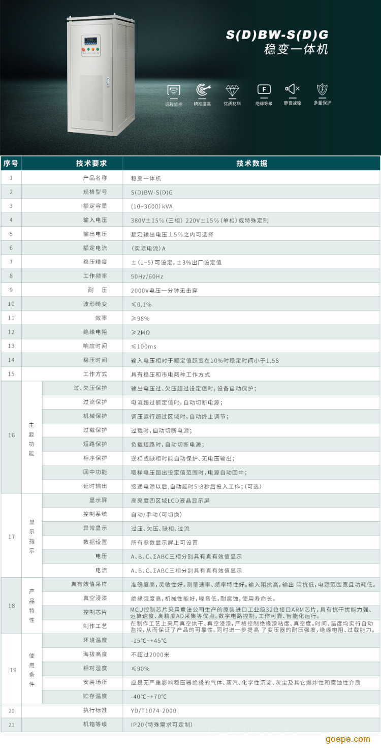 容量大、效率高、无波形畸变、电压调节平稳、控制功能齐全、适用负载广泛、能承受瞬时过载、可长期连续工作以及体积小、重量轻,使用安装方便,运行可靠等特点。