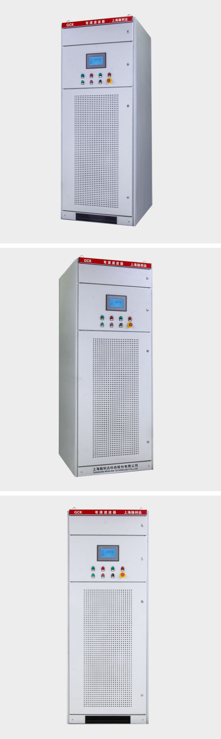 有源电力滤波器(Active Power Filter,简称APF),是采用现代电力电子技术和基于高速DSP器件的数字信号处理技术制成的新型电能质量治理专用设备。它由指令电流运算电路和补偿电流发生电路两个主要部分组成。指令电流运算电路实时监视线路中的电流,并将模拟电流信号转换为数字信号,送入高速数字信号处理器(DSP)对信号进行处理,将谐波与基波分离,并以脉宽调制(PWM)信号形式向补偿电流发生电路送出驱动脉冲,驱动IGBT或IPM功率模块,生成与电网谐波电流幅值相等、极性相反的补偿电流注入电网,对谐波电流进行补偿或抵消,主动消除电力谐波,同样的原理进行无功补偿与不平衡补偿。